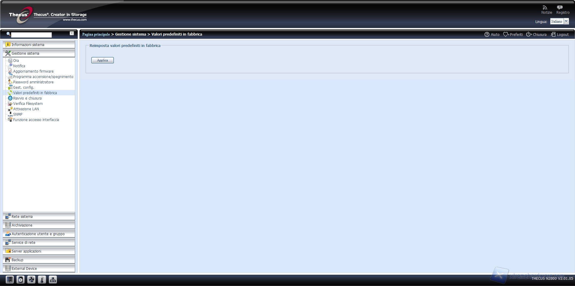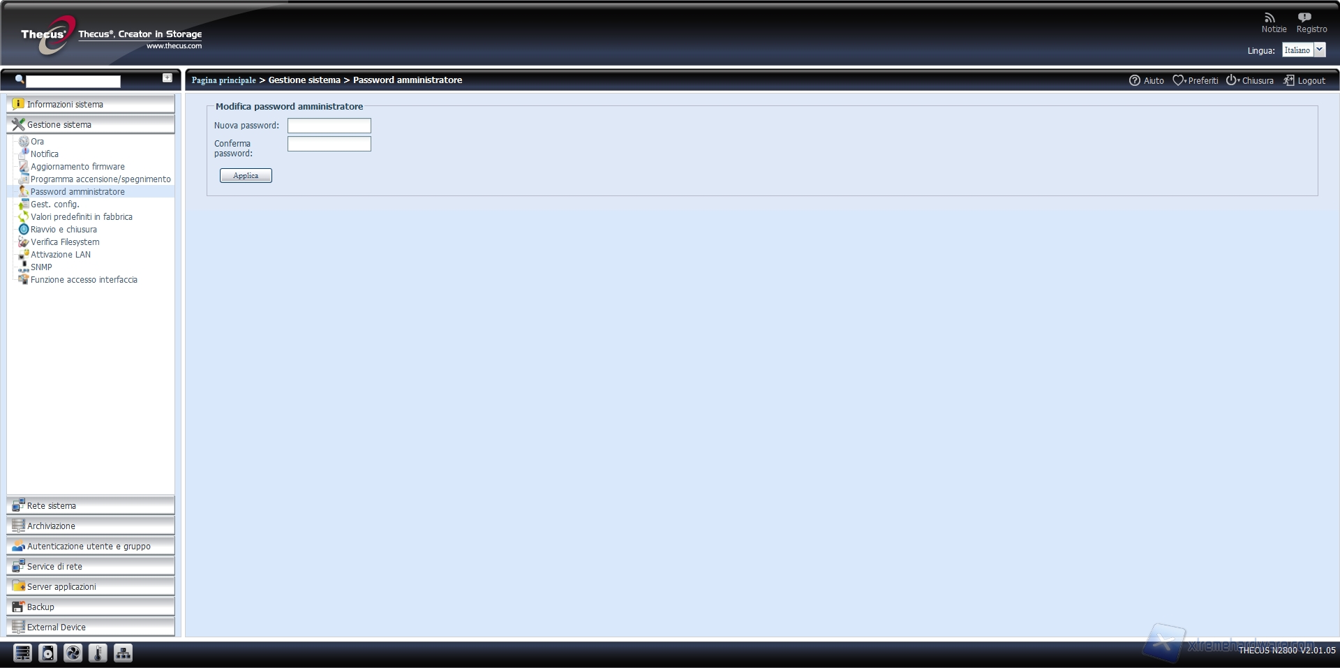 Se vogliamo utilizzare i servizi “Web Disk”, “Server Foto” e “Modulo” dobbiamo prima attivarli tramite questo menù che è, inoltre, l’ultimo che troviamo nella macro-sezione “Gestione Sistema”.