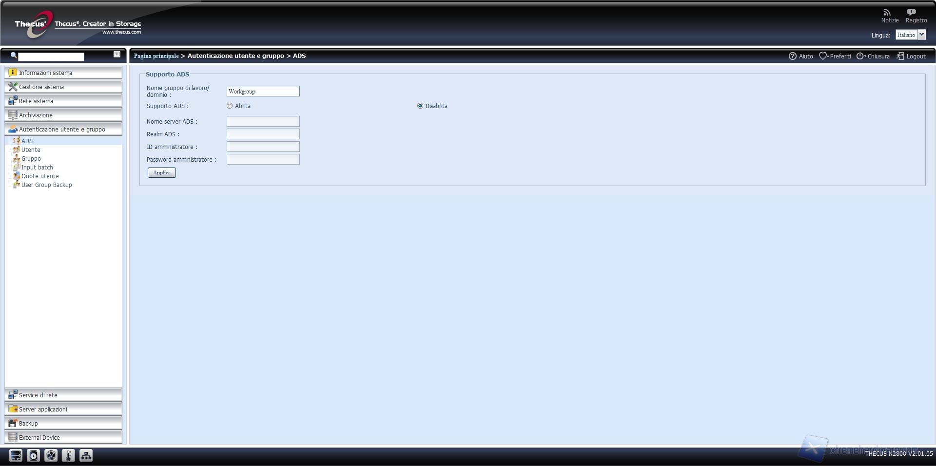 In questa schermata possiamo impostare il nome del gruppo di lavoro e abilitare la funzione Active Directory.