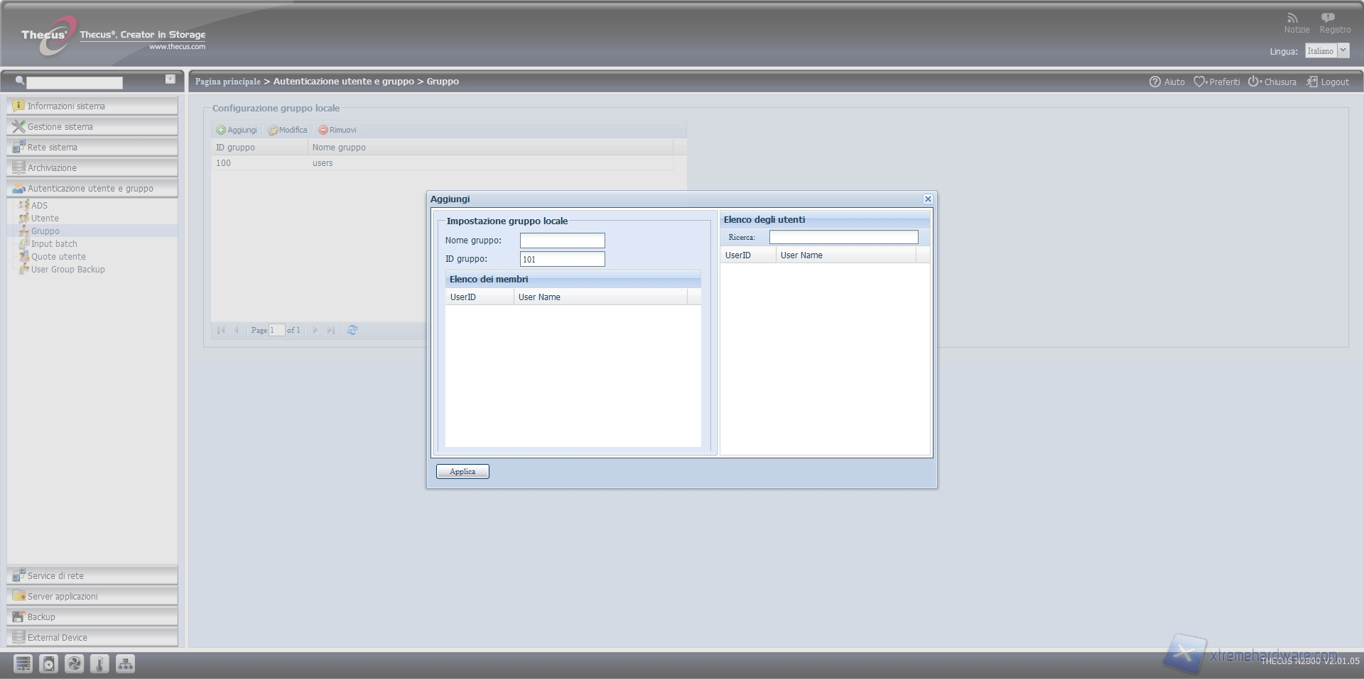 Ultima voce di questa macro-sezione è “User Group Backup”, funzione utile in quanto permette di salvare e cariare in un secondo momento tutte le impostazioni relative a utenti e gruppi.