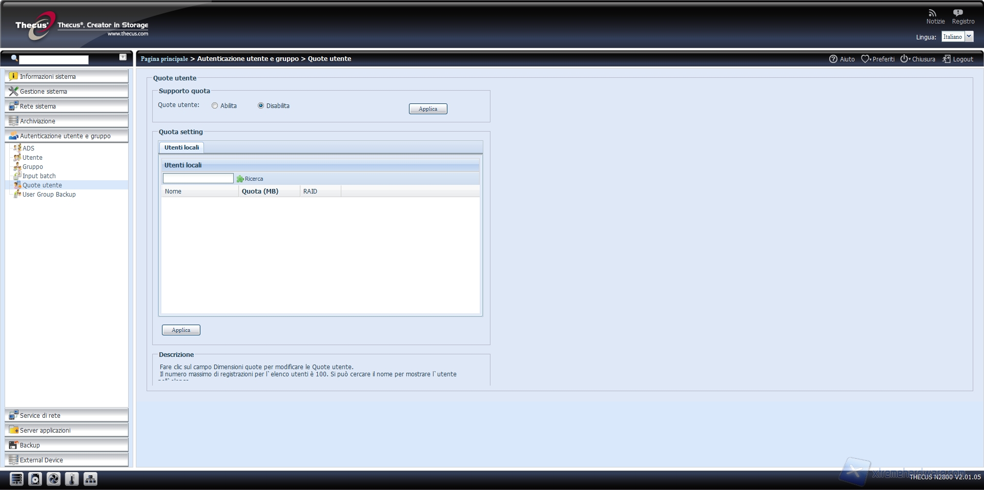 Se abilitiamo la funzione “quote utente”, possiamo impostare un limite massimo di spazio da riservare ad un utente o a tutti.